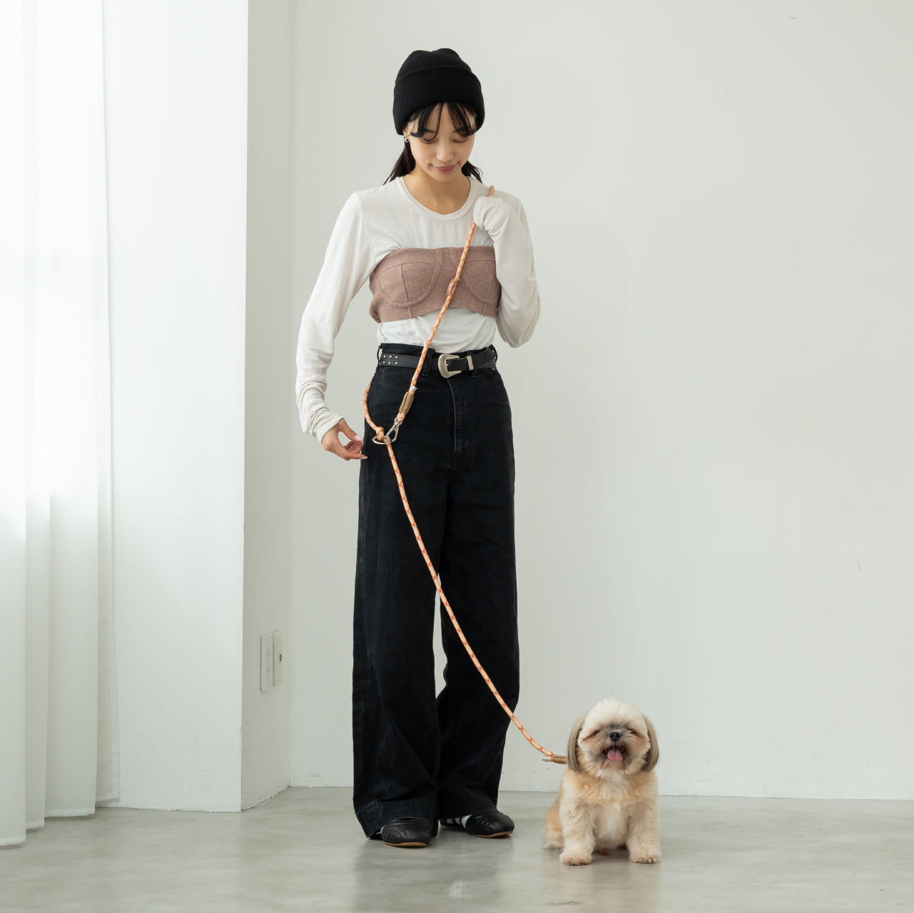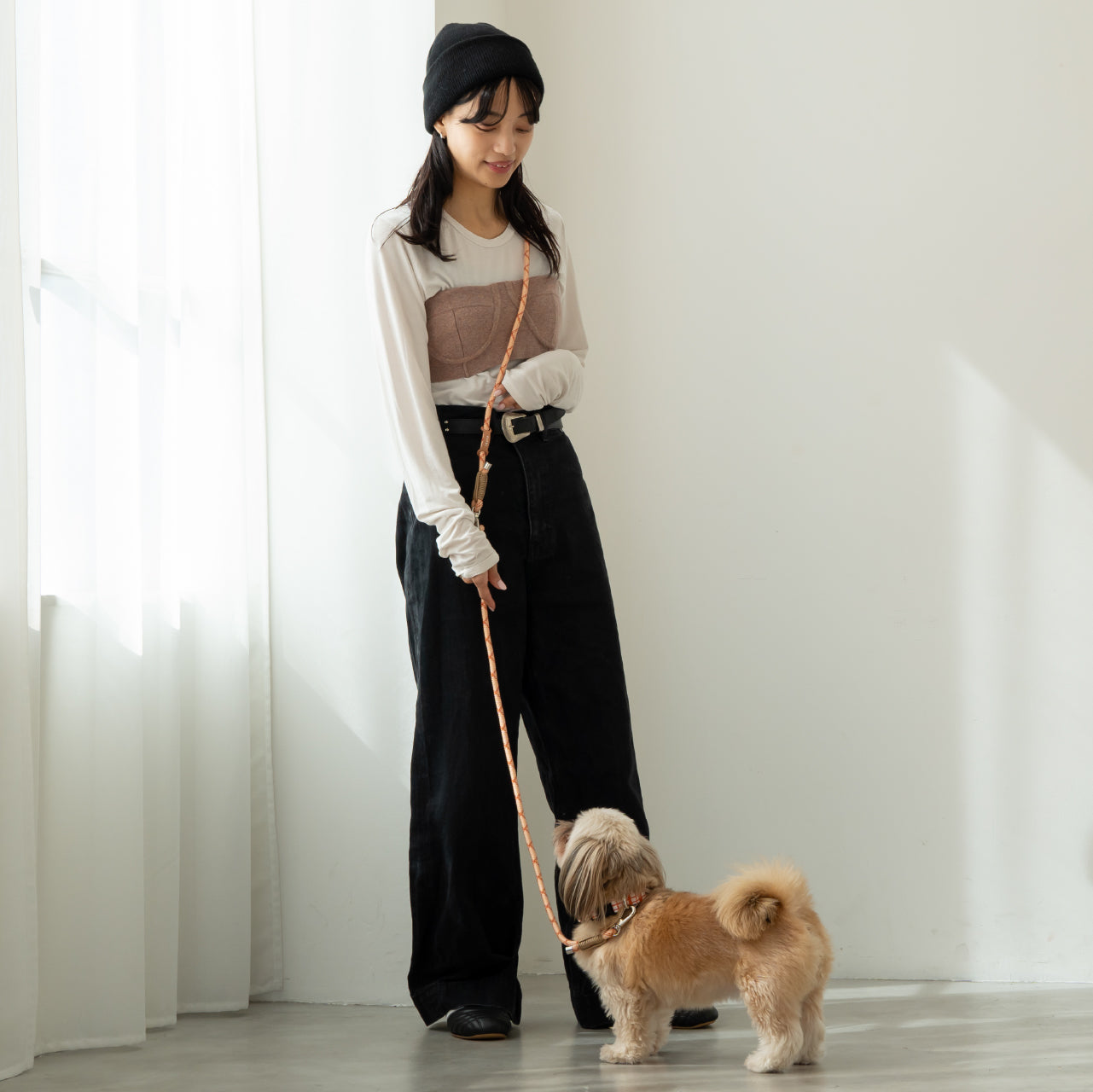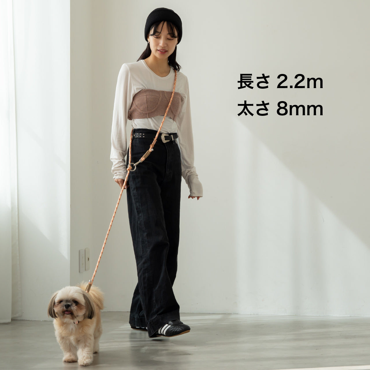 肩掛けタイプのリードでハンズフリーでお散歩できます。