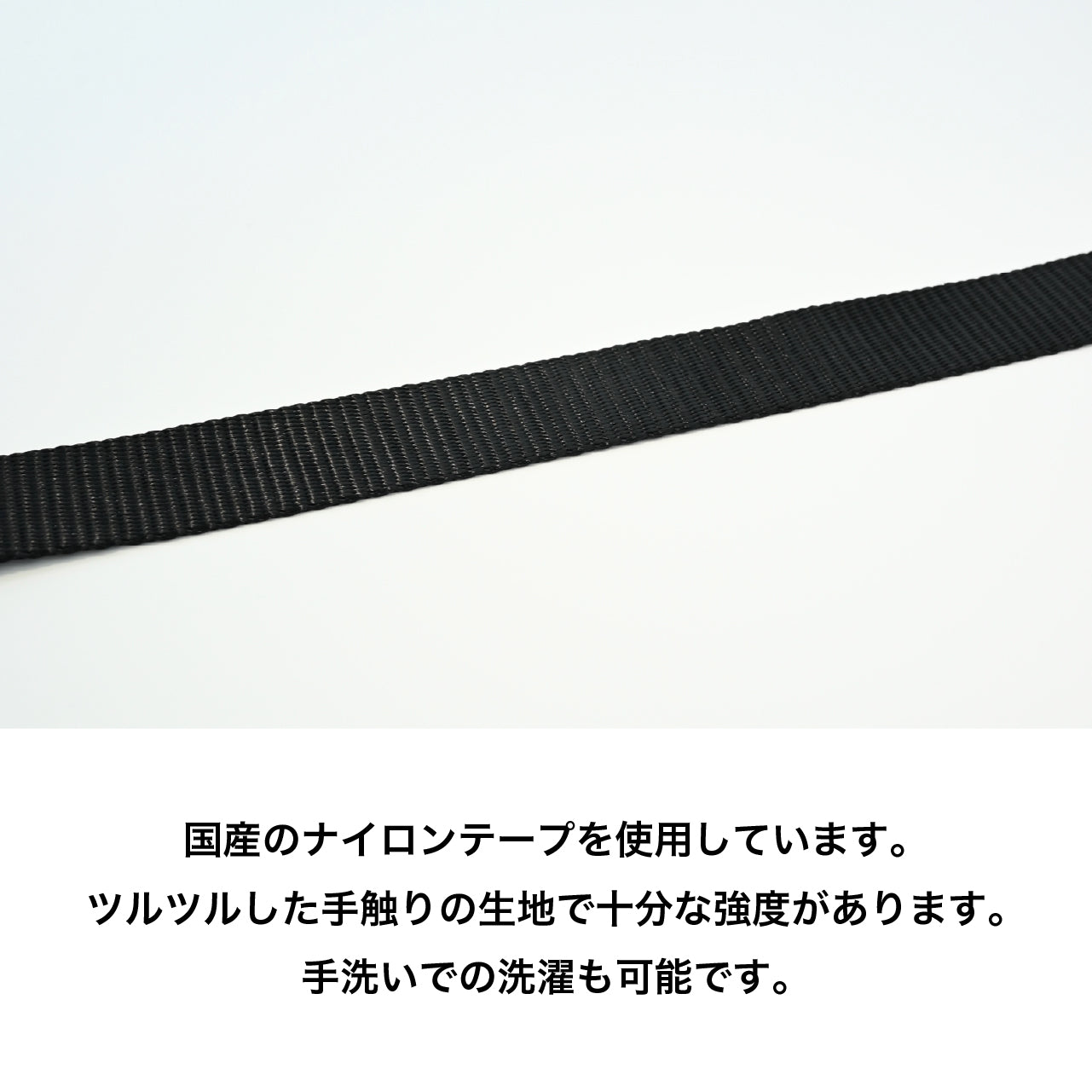 静岡の自動車用安全織物メーカーにて、1本ずつ丁寧に縫製加工をしていただいており、金具からすべて国産にこだわって製作しました。
