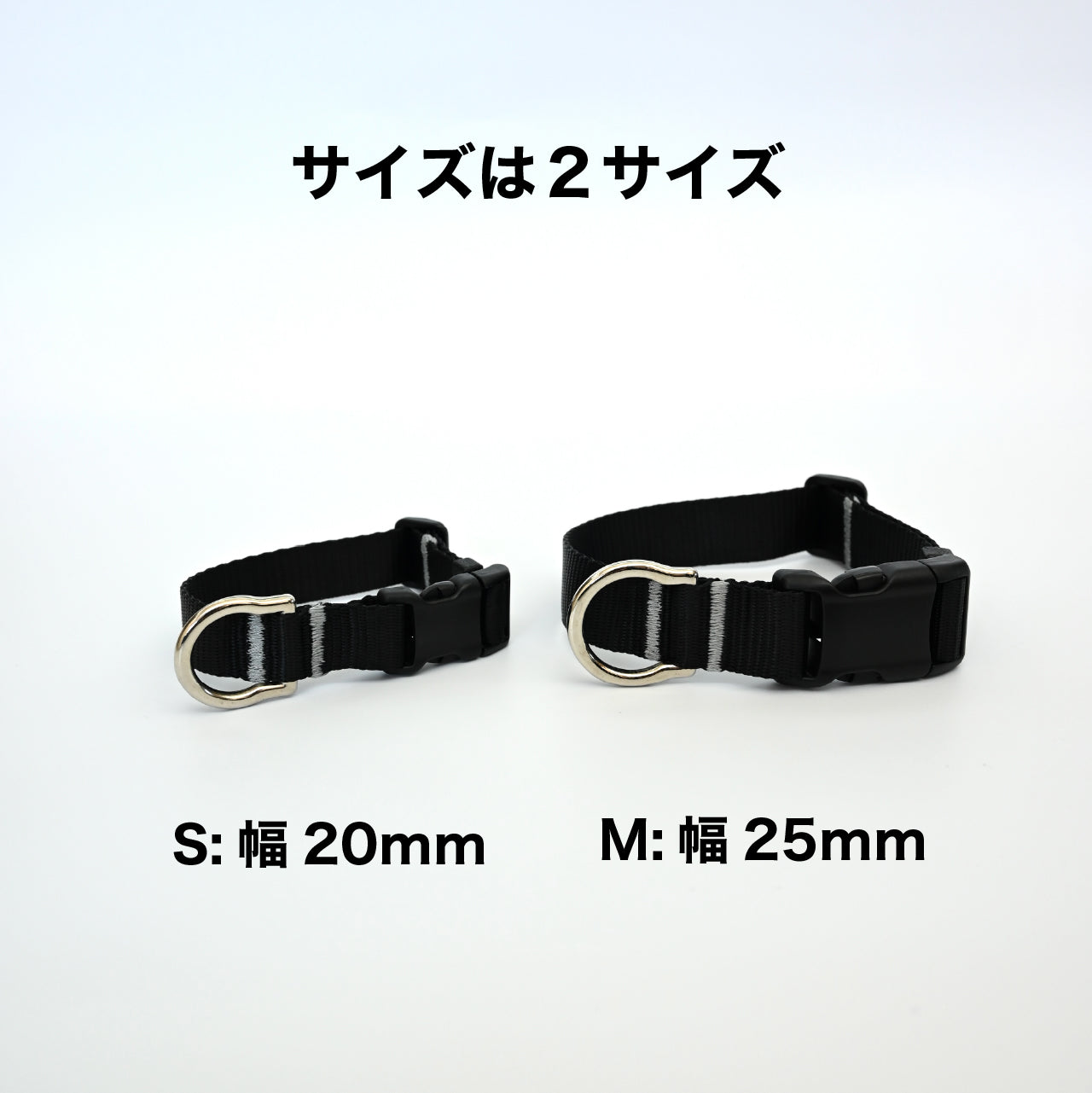 小型犬でもお使いいただけるSサイズは20mmの幅にしており、Mサイズは中型犬対応の25mmになっています。