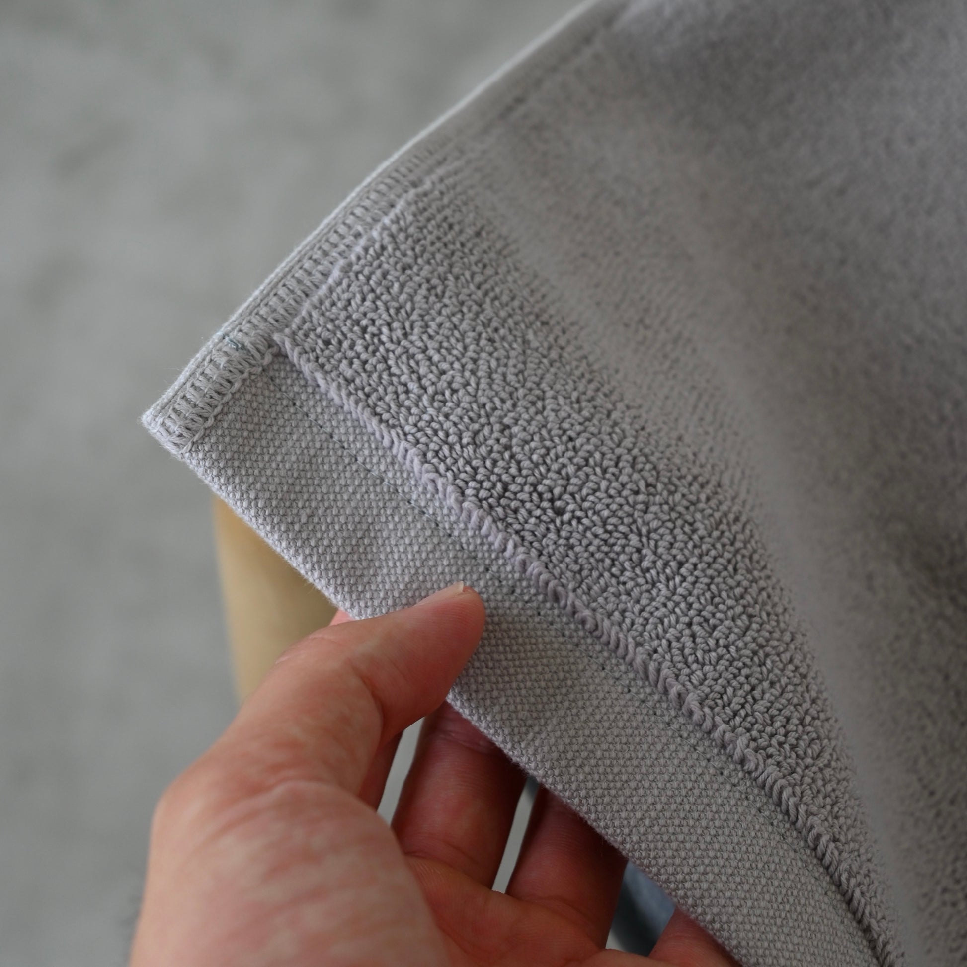 今治に並ぶ2大産地 大阪泉州にて、高級ホテルにもタオルを卸す工場で国内生産されています。特殊な織機を使うことでハリのある厚みを保ちながら、綿100%の目の混んだ生地で柔らかな風合いに仕上げました。ワンちゃんにとっても良い肌心地になっています。
