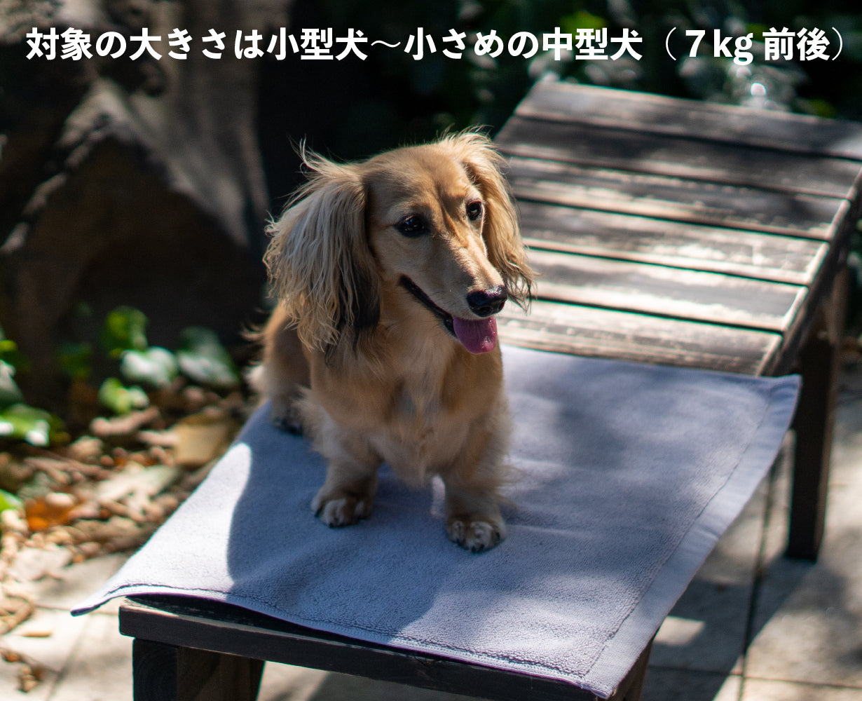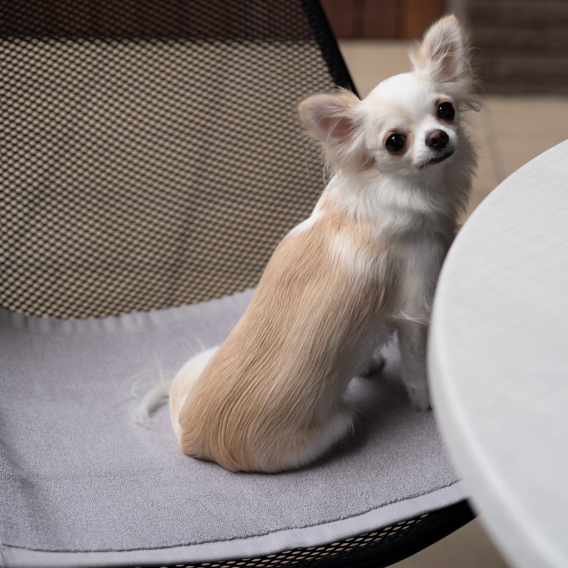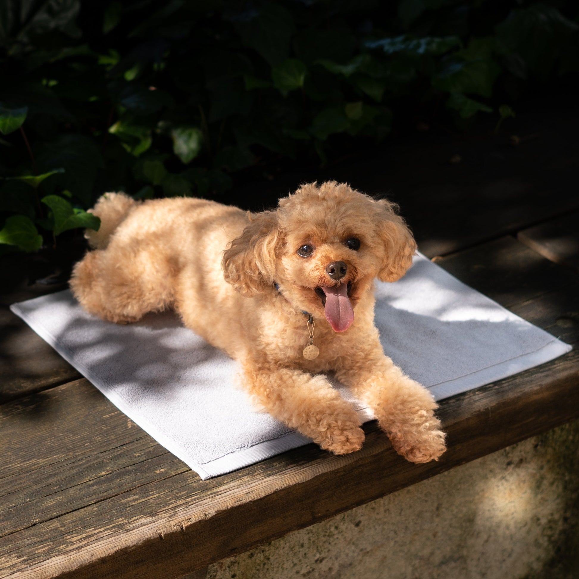 ワンちゃんにとっての心地よさ、使いやすさを考え、ハリと厚みのある上質なタオル生地で出来たカフェマットです。いろんな場面で使いやすいようシンプルなデザインに仕上げています。