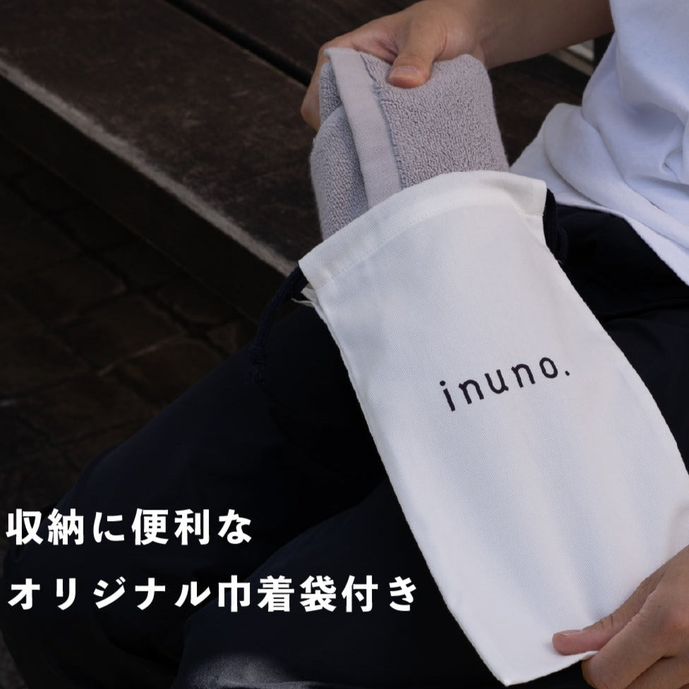 手提げバッグにも入る、inuno. ロゴ入りの巾着袋もついています。