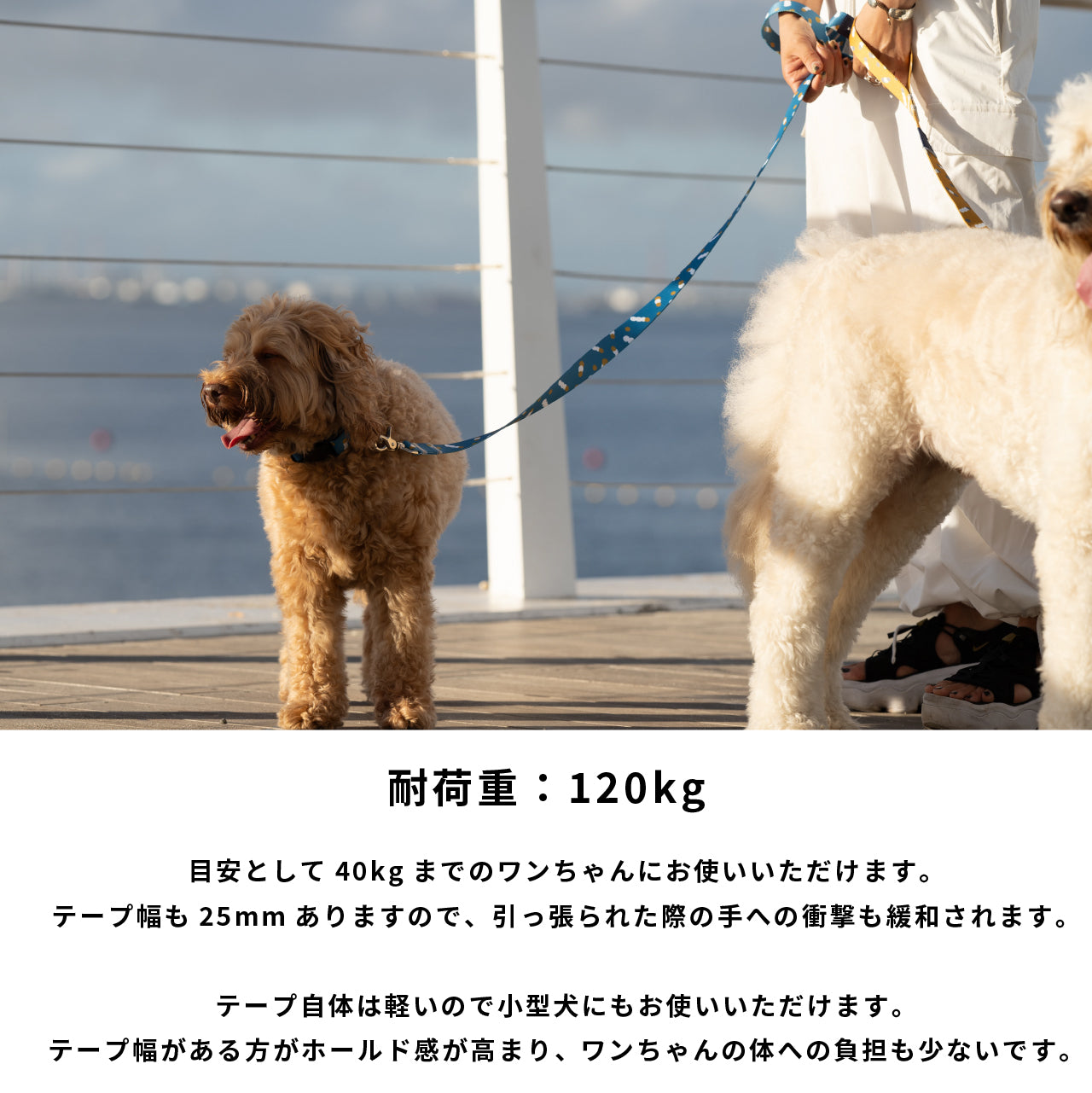 犬具としての安全性は第一に考えており、40kgの大型犬までお使いいただける耐荷重があります。(引っ張り強度:120kg)