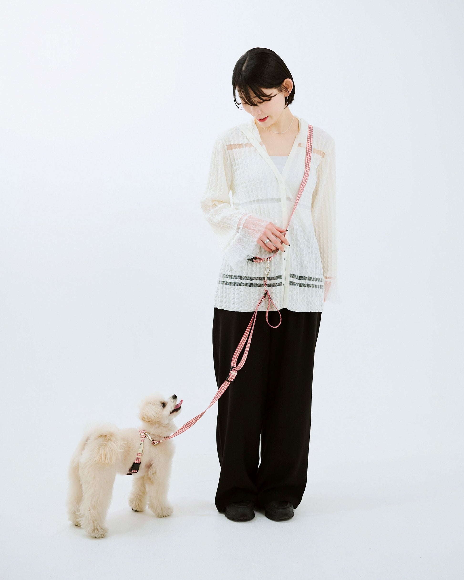 ・事故防止のため、初めての犬具(首輪・ハーネス・リード)を使用する際は、 室内で安全に散歩できることを確認してから外で使用するようお願いします。