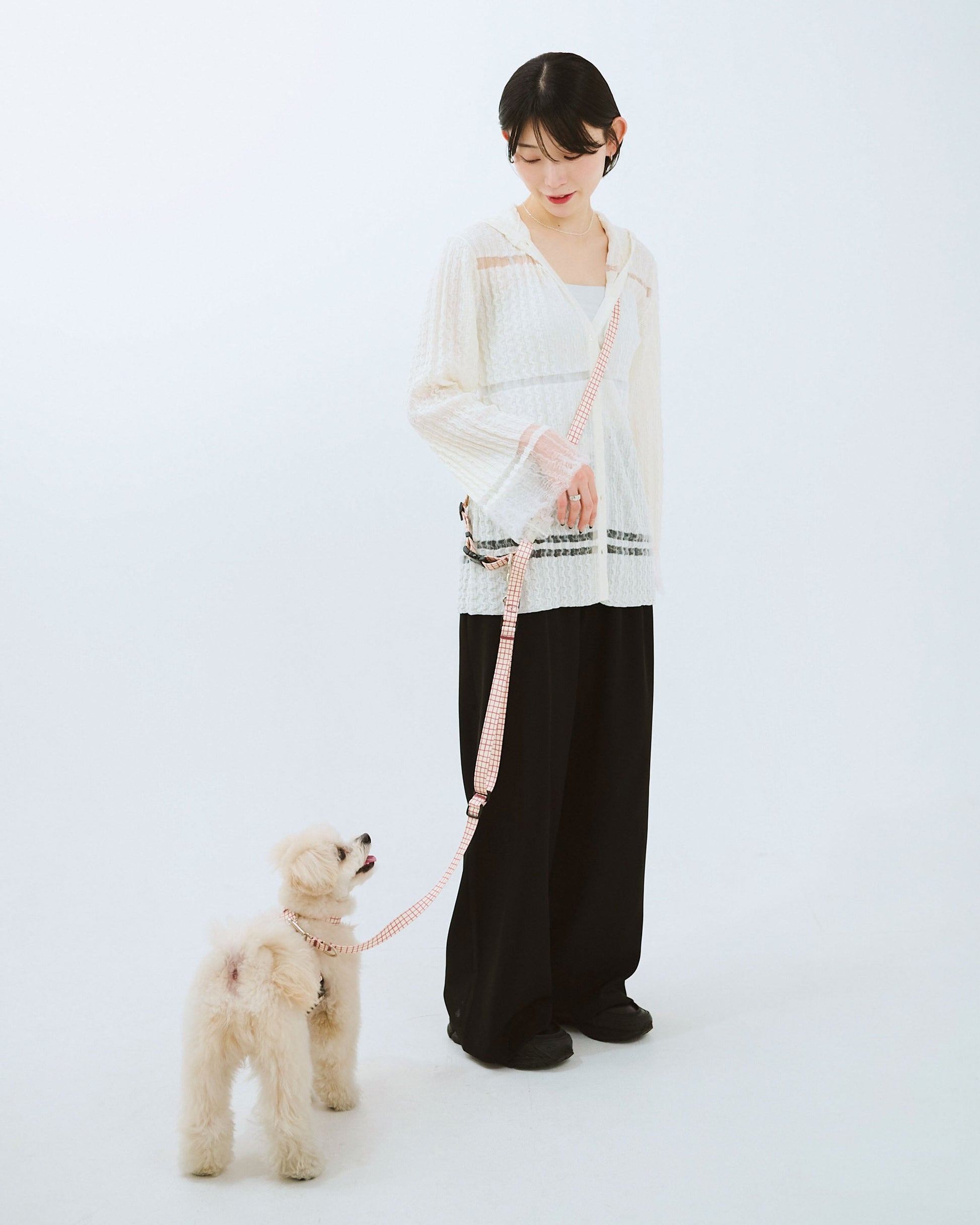 ・事故防止のため、初めての犬具(首輪・ハーネス・リード)を使用する際は、 室内で安全に散歩できることを確認してから外で使用するようお願いします。