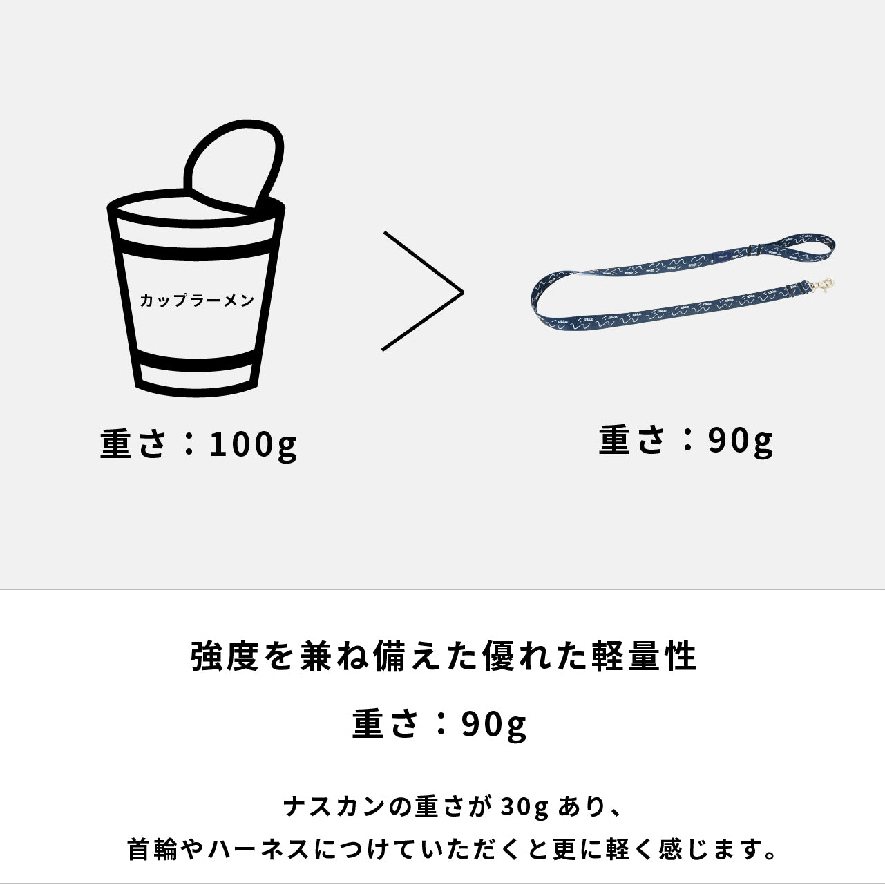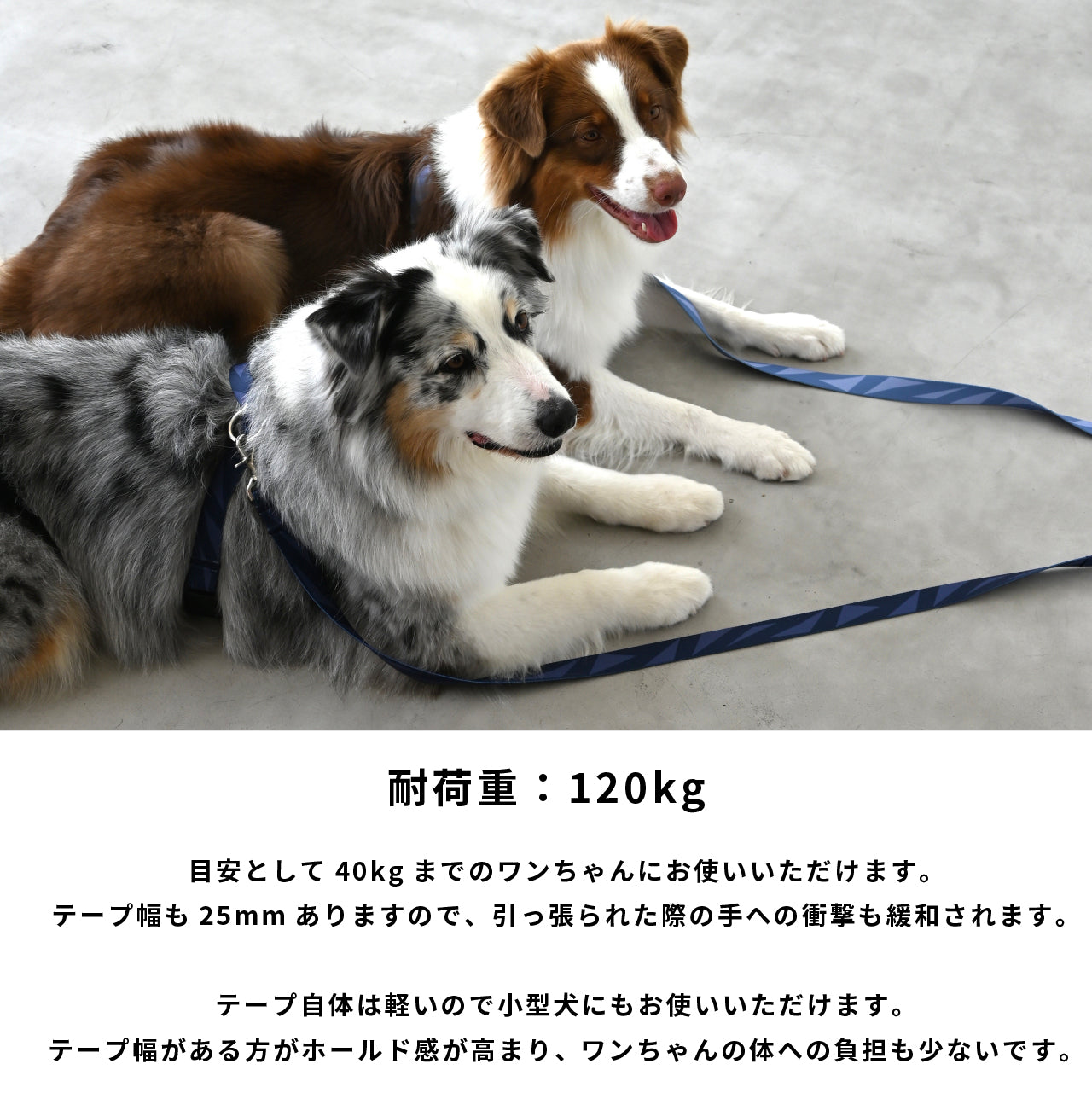 犬具としての安全性は第一に考えており、40kgの大型犬までお使いいただける耐荷重があります。(引っ張り強度:120kg)