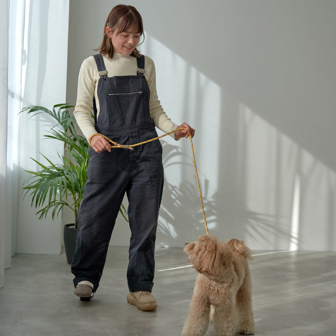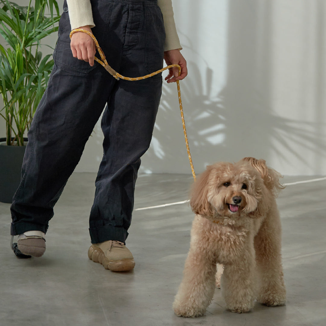 発色の良いナイロン製のロープで出来たリード。ロープからオリジナルで製作しており、オーナー様のコーディネートの差し色になるようなに配色を考えています。男女問わず、持っていただけるデザインです。