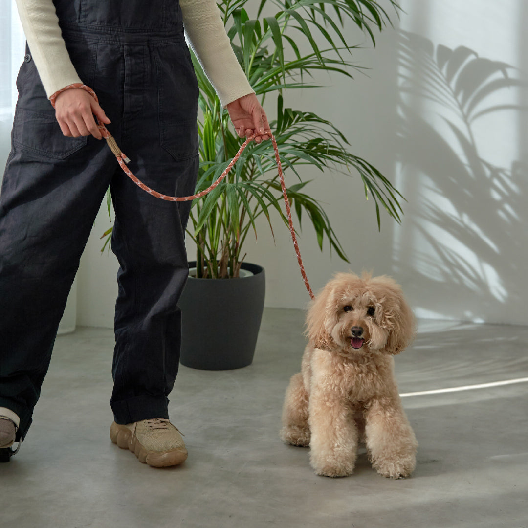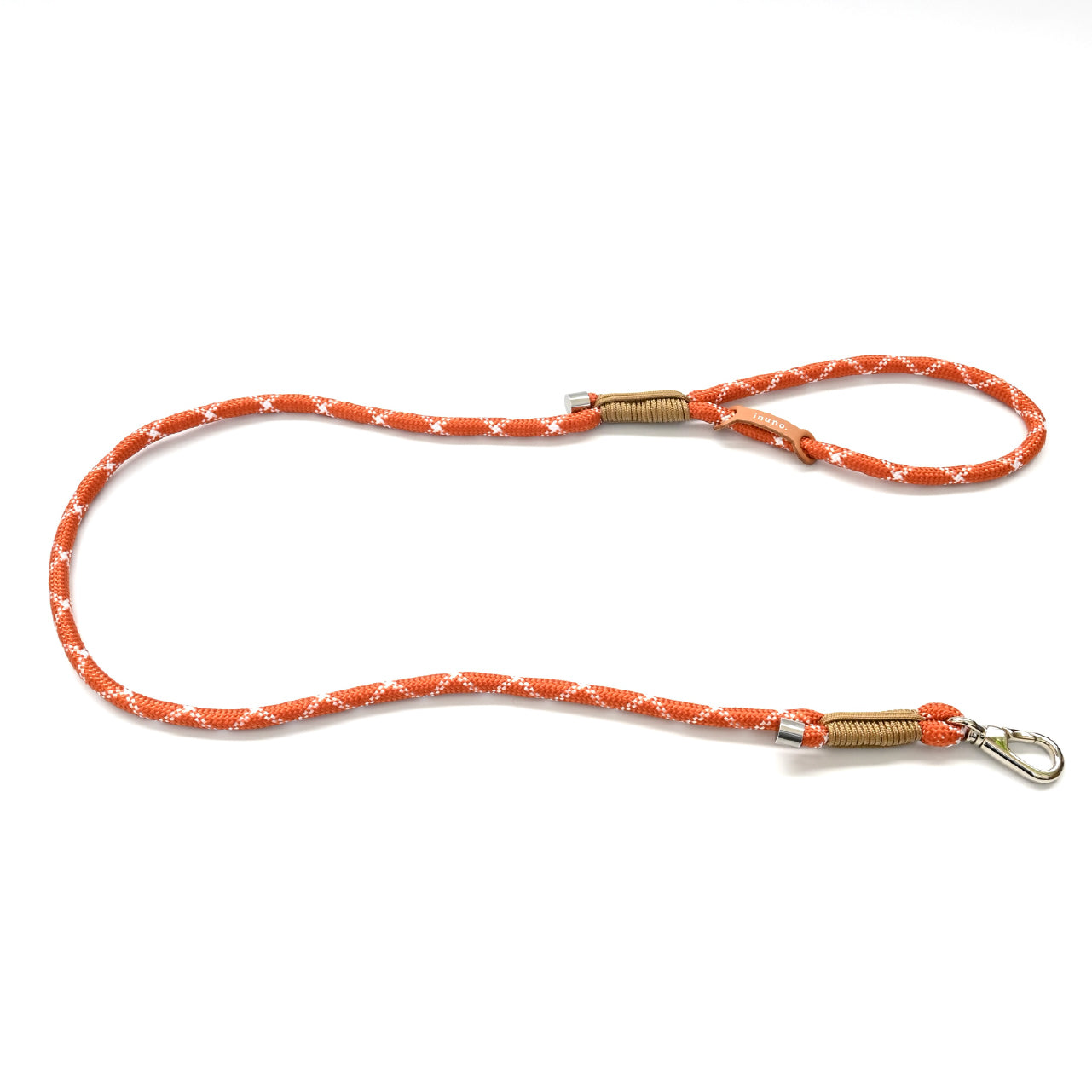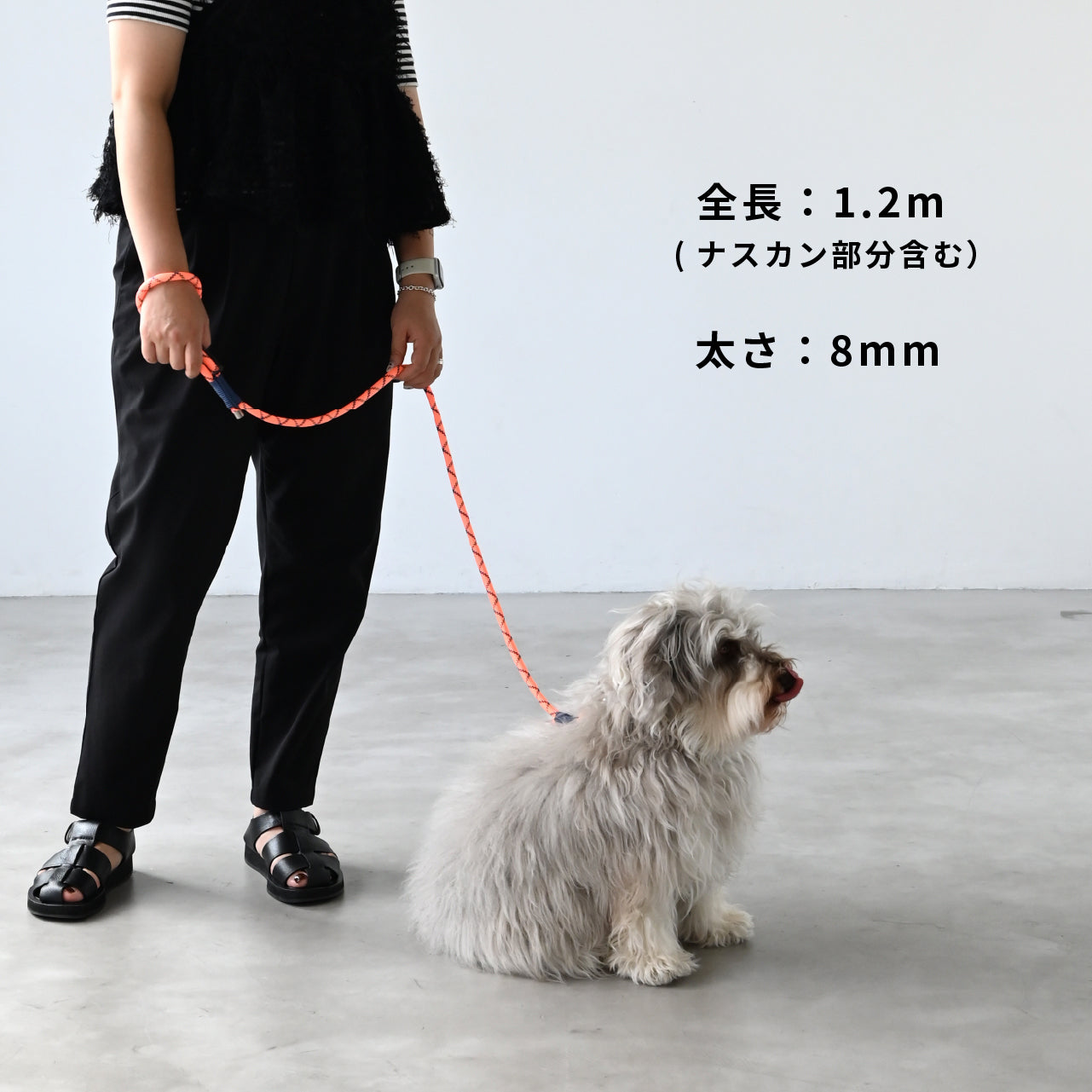 発色の良いナイロン製のロープで出来たリード。ロープからオリジナルで製作しており、オーナー様のコーディネートの差し色になるようなに配色を考えています。男女問わず、持っていただけるデザインです。