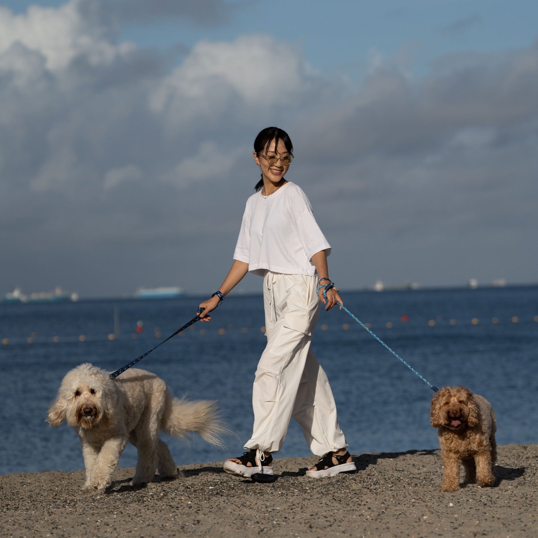 ・事故防止のため、初めての犬具(首輪・ハーネス・リード)を使用する際は、 室内で安全に散歩できることを確認してから外で使用するようお願いします。