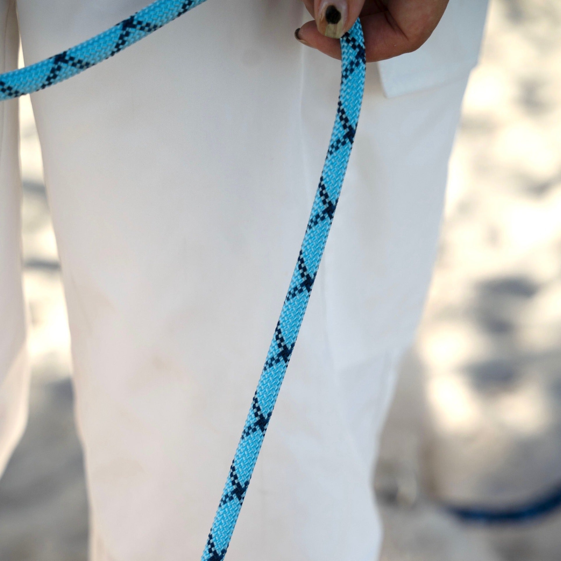クライミングロープにも使われるロープで、軽さと柔らかさがありつつ、強度も十分にあるリードです。静岡の歴史ある工場で職人さんが丁寧に作っています。