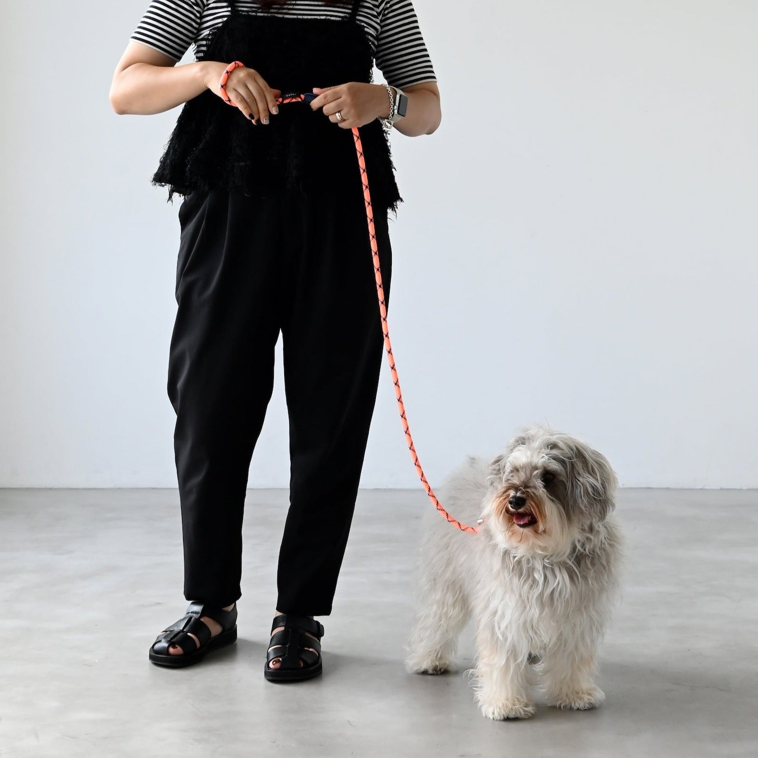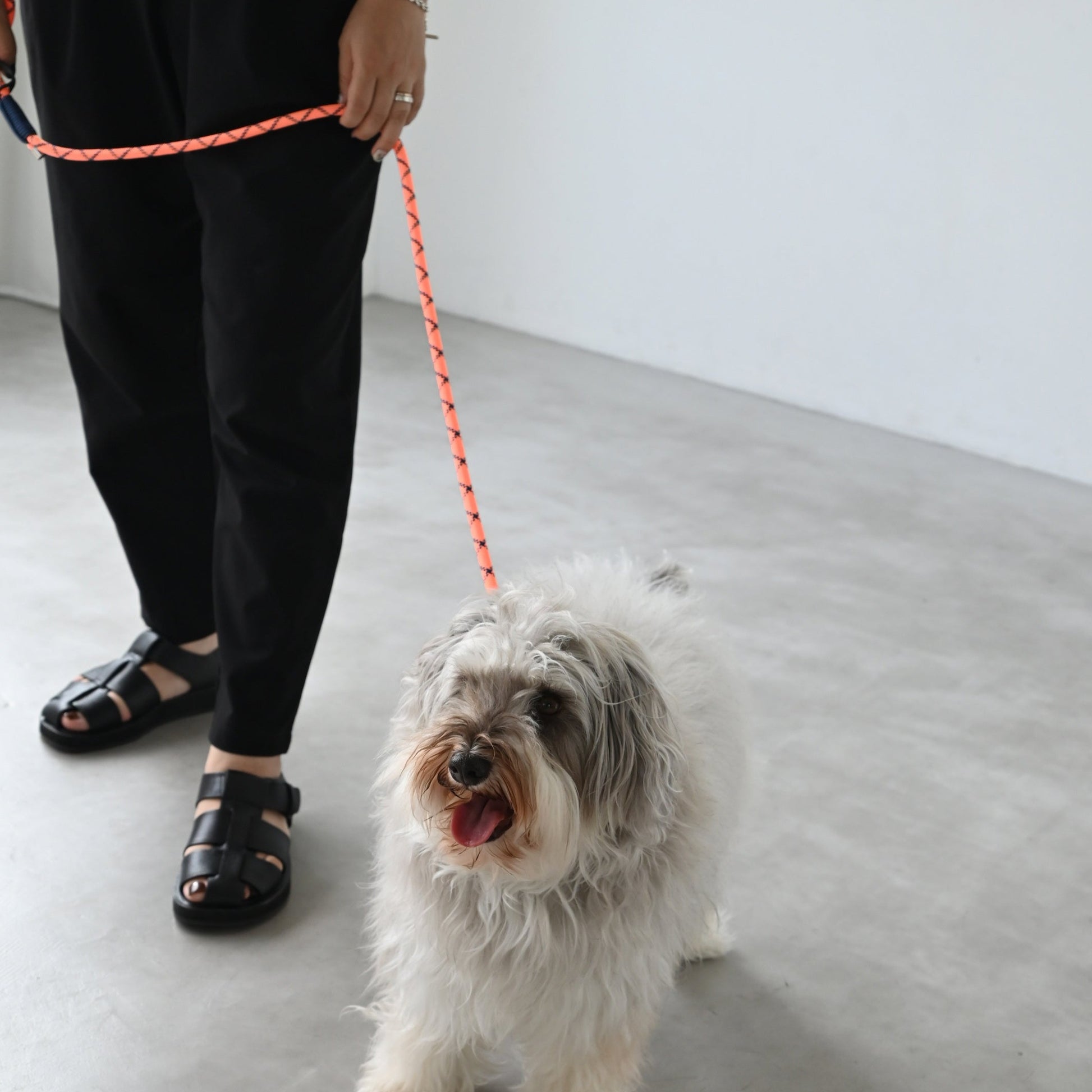 発色の良いナイロン製のロープで出来たリード。ロープからオリジナルで製作しており、オーナー様のコーディネートの差し色になるようなに配色を考えています。男女問わず、持っていただけるデザインです。