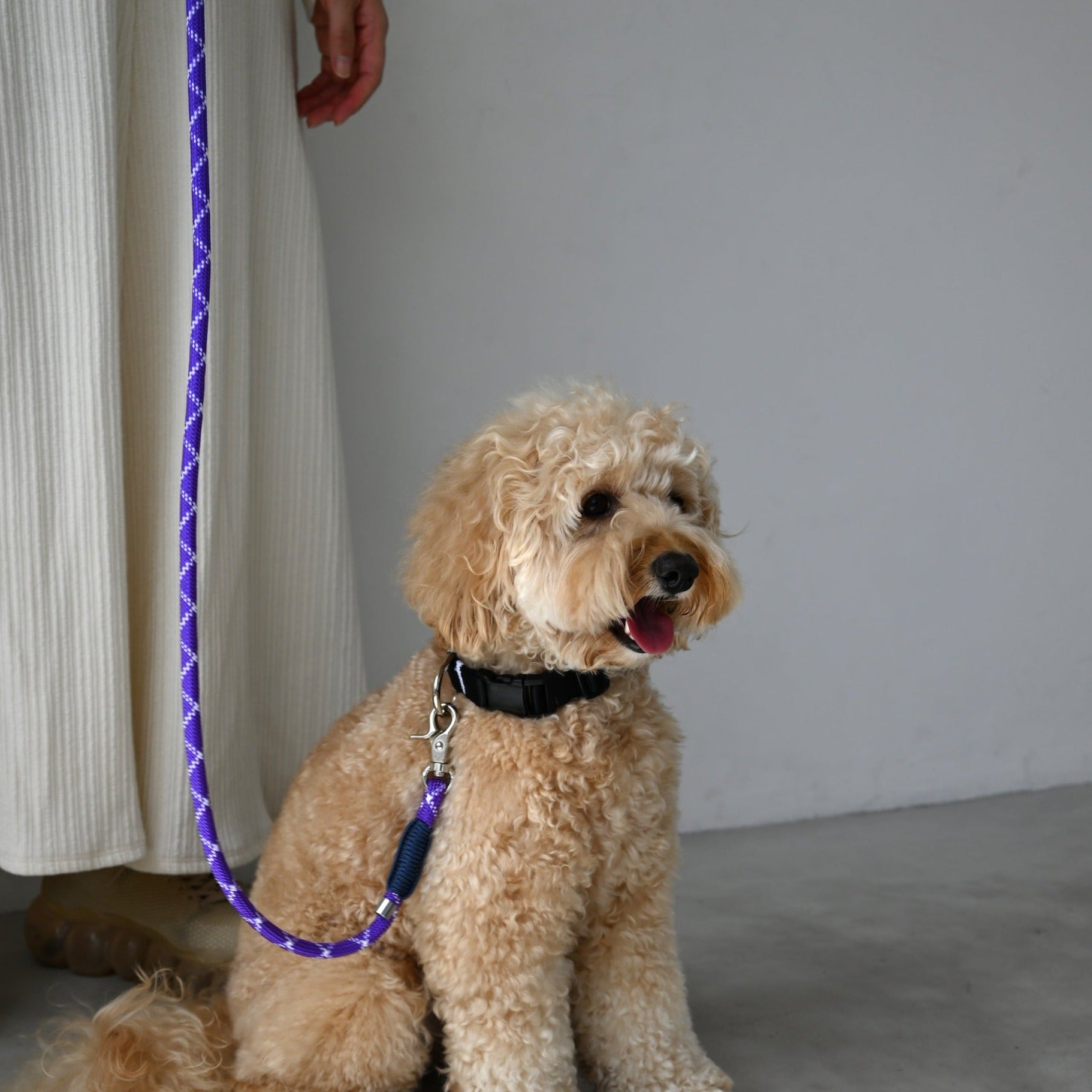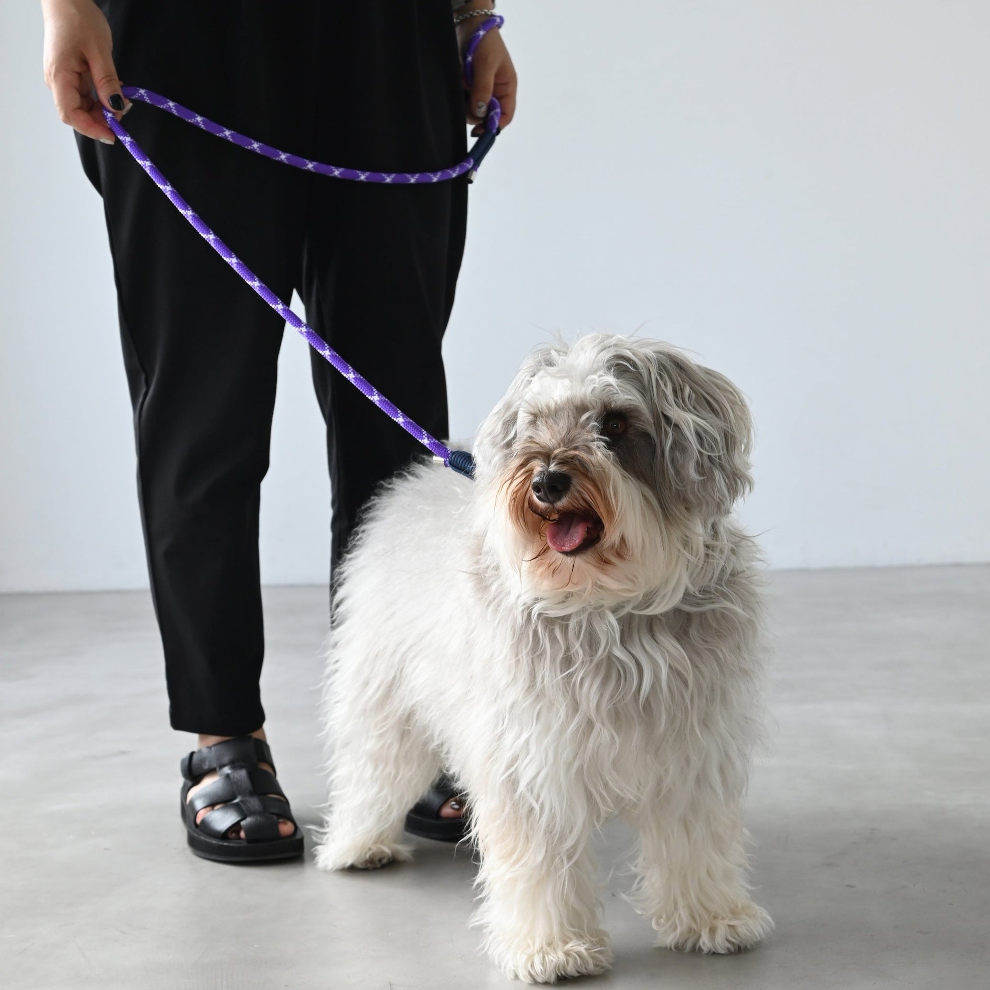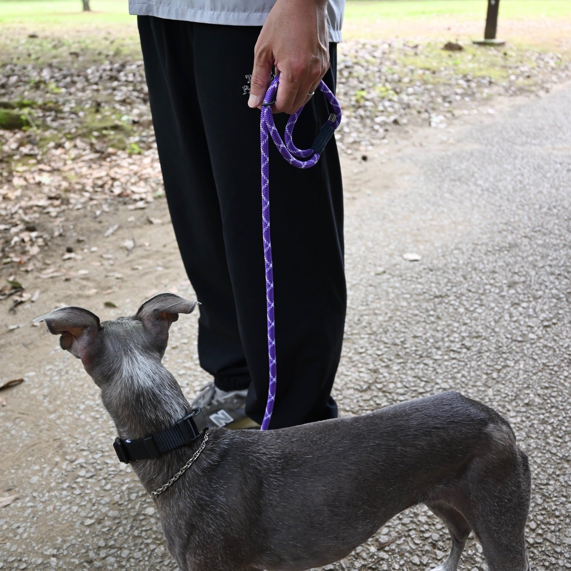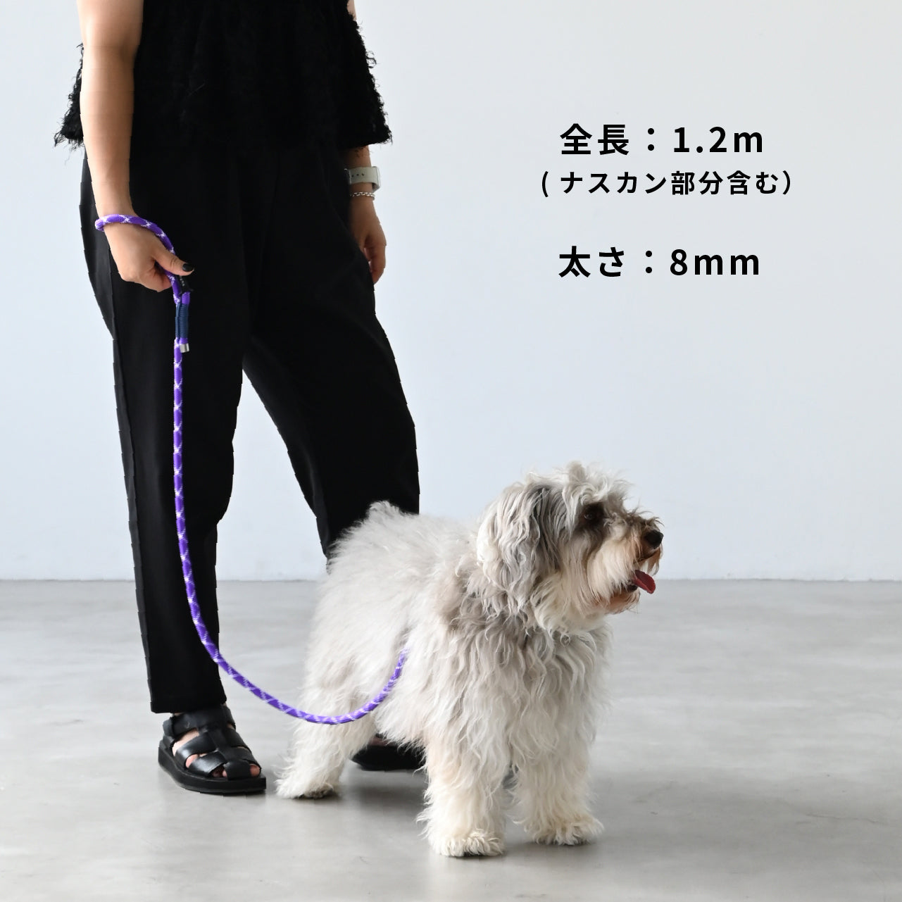 発色の良いナイロン製のロープで出来たリード。ロープからオリジナルで製作しており、オーナー様のコーディネートの差し色になるようなに配色を考えています。男女問わず、持っていただけるデザインです。