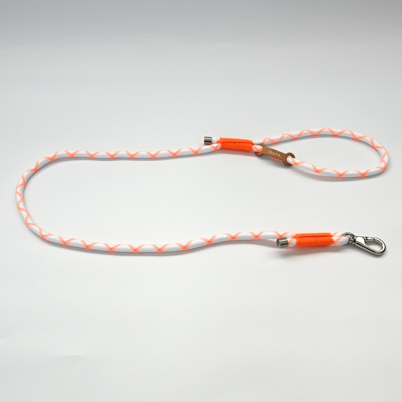 発色の良いナイロン製のロープで出来たリード。ロープからオリジナルで製作しており、オーナー様のコーディネートの差し色になるようなに配色を考えています。男女問わず、持っていただけるデザインです。